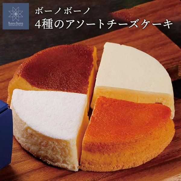 エダムチーズケーキ、ニューヨークチーズケーキ、サワーチーズケーキ、ゴルゴンゾーラチーズケーキ 4種の アソートです。良質な素材を使用したシンプルで個性的な濃厚チーズケーキです。多種多彩。大切な人と味わいたい、チーズケーキ。チーズケーキ専門店ボーノボーノは、おかげさまで32周年を迎えました。良質の素材を使用した、豊富な種類のチーズケーキをご用意しております。